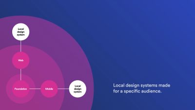 The different systems stay connected because they're all built using design tokens, and they live on the same website, following a similar structure defined by the Encore framework. Before, we had 22 disconnected design systems; now, we still have multiple systems, but they're all connected and under the same umbrella.